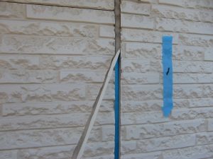 外壁にプライマーやシーリング剤を付けないために、養生テープで保護します。