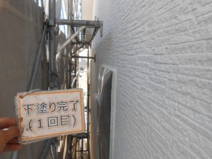 次に外壁の塗装です!塗装は下塗り、中塗り、上塗りの3回が基本となります。