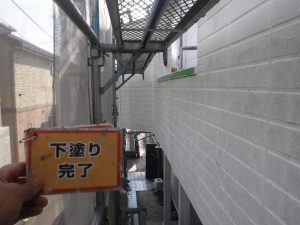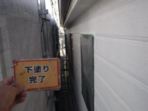 次に外壁の塗装です!塗装は下塗り、中塗り、上塗りの3回が基本となります。