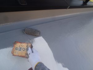 次に外壁の塗装です!塗装は下塗り、中塗り、上塗りの3回が基本となります。