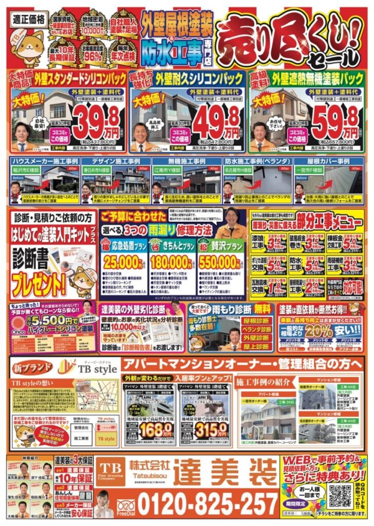 愛知県一宮市・江南市の外壁塗装・屋根塗装・防水工事のご相談・お見積り依頼・診断(無料)は株式会社達美装
