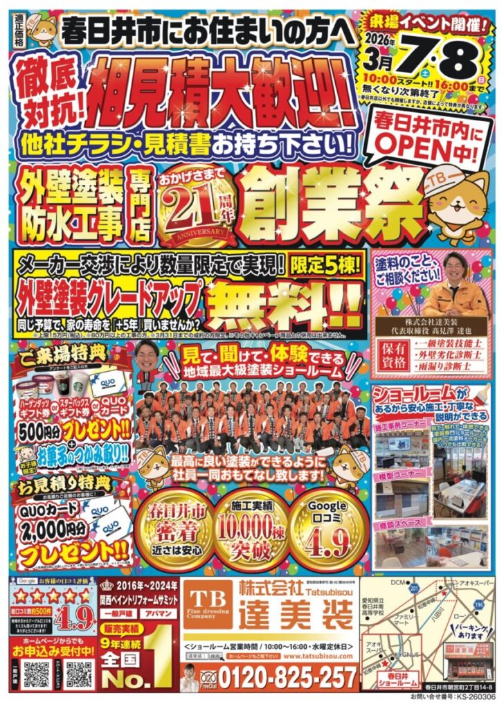 HOME > 達美装の現場ブログ > スタッフブログ > 【春日井店】3月7日~8日 イベント開催!!