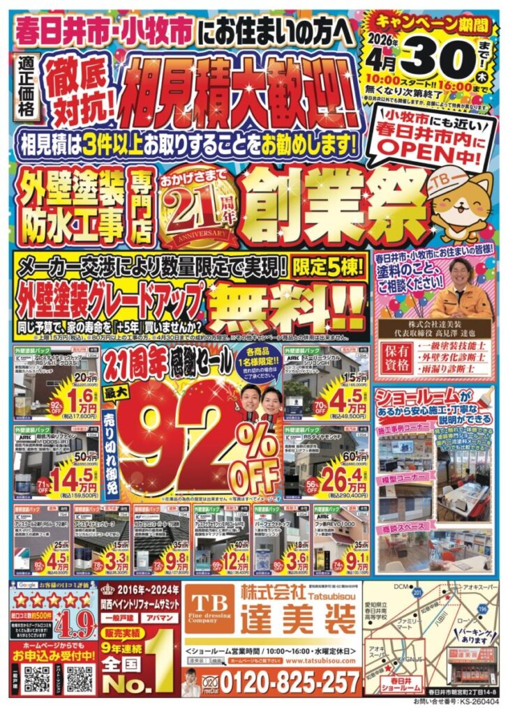 春日井市・小牧市にお住いの皆様こんにちは!