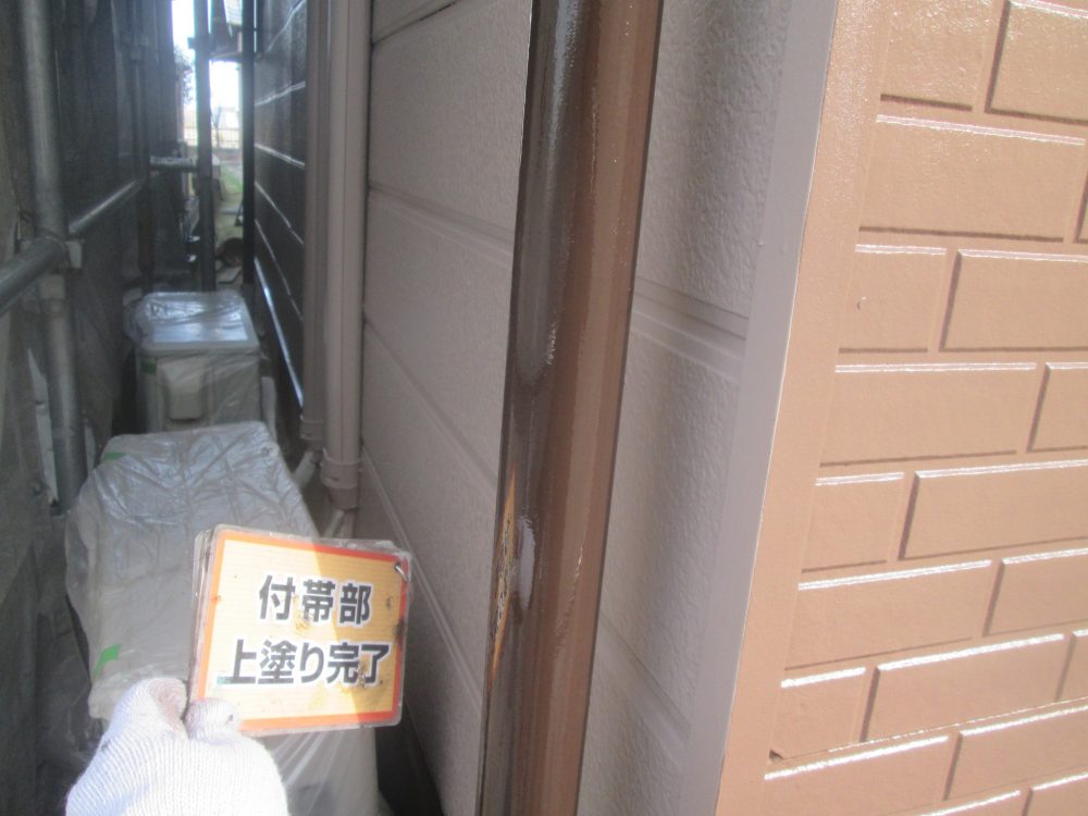 【上塗り】塗料を3回塗り重ねることで外壁の艶が増し、紫外線や雨水に強い耐久性のある外壁に仕上がります。