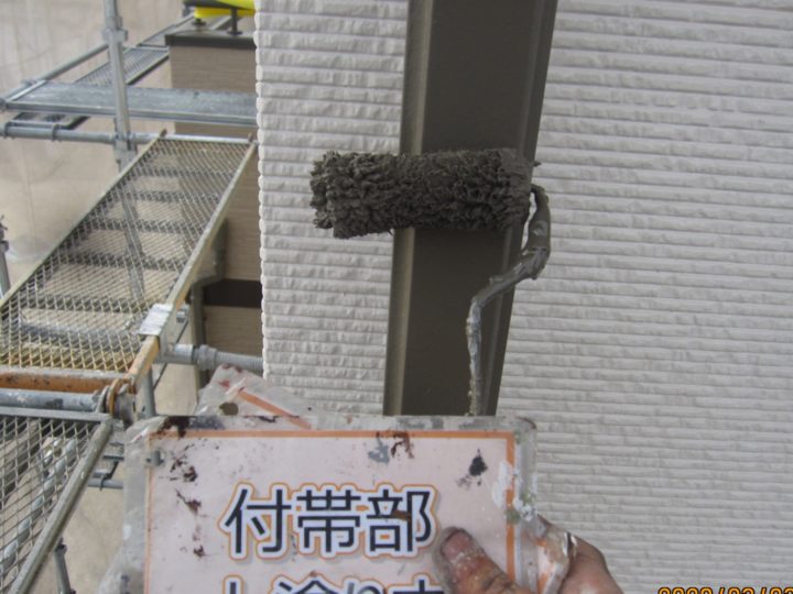 【プライマー】古くなったシーリング剤を撤去します。その後プライマーを塗布しシーリング材の密着性を高めます。