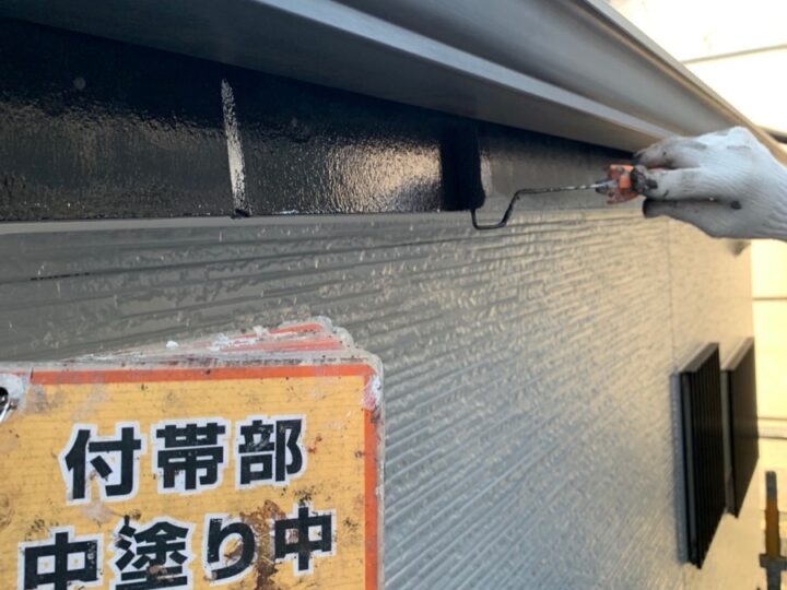 【上塗り】塗料を3回塗り重ねることで外壁の艶が増し、紫外線や雨水に強い耐久性のある外壁に仕上がります。