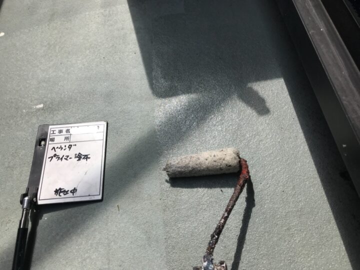 【プライマー塗布】既存防水層と新規防水層をがっちりと接着させます。