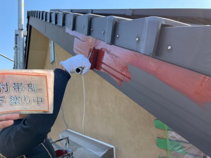 【上塗り】塗料を塗り重ね、色ムラを無くし美しく仕上げます。