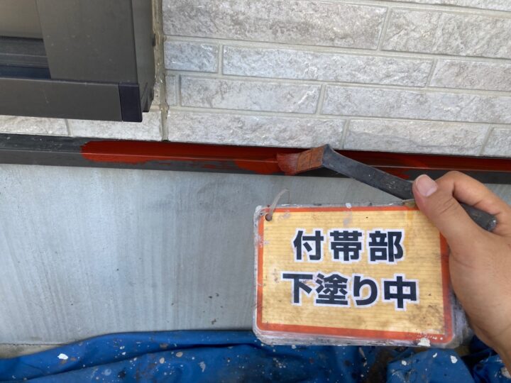 【下塗り】サビ止め塗料を塗装します。