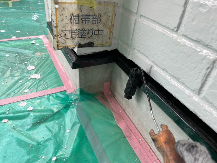 【プライマー塗布】既存防水層と新規防水層をがっちりと接着させます。
