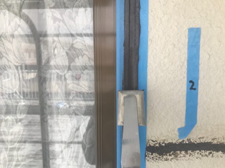 【押さえ】中に空気が入らないよう、シーリング剤を丁寧に充填していきます。その後、ヘラで形を整え施工完了です。