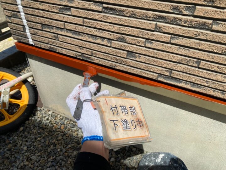 【下塗り】錆び止め塗料を塗布し、鉄部の錆び防止をします。