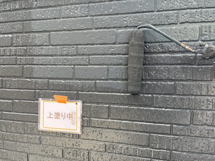 【上塗り】塗料を3回塗り重ねることで外壁の艶が増し、紫外線や雨水に強い耐久性のある外壁に仕上がります。