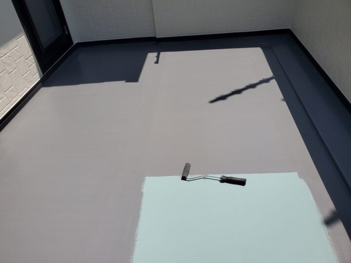 【トップコート】仕上げに保護塗料を塗布し、施工完了です。