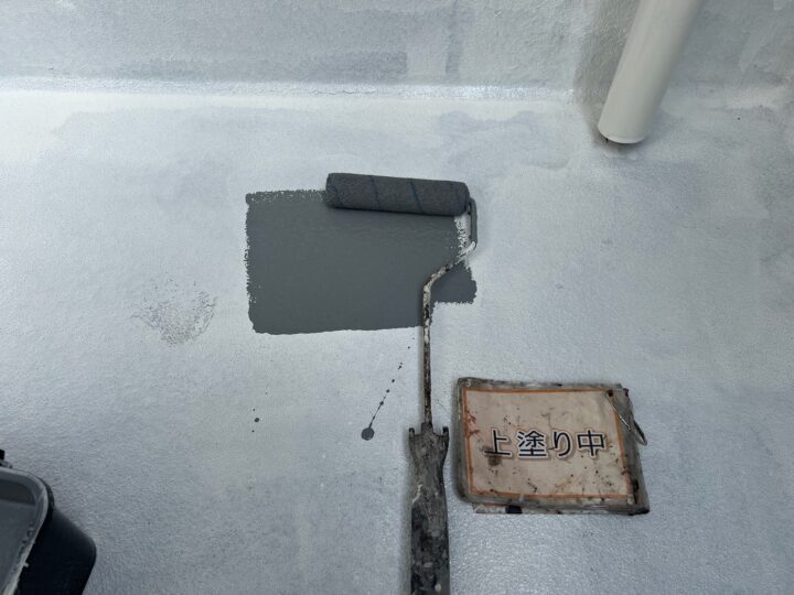 【トップコート】仕上げに保護塗料を塗布し、施工完了です。