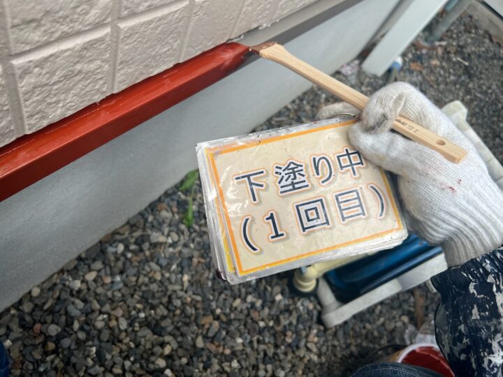 【下塗り】錆び止め塗料を塗布し、鉄部の錆び防止をします。