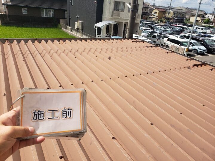 【上塗り】塗料を3回塗り重ねることで艶が増し、紫外線や雨水に強い耐久性のある屋根に仕上がります。