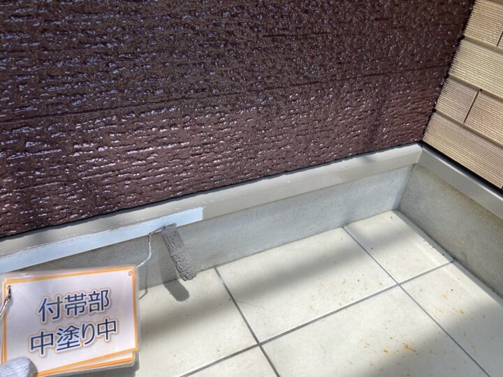 【プライマー塗布】隅の部分から雨漏りしやすいため、丁寧に塗布していきます。