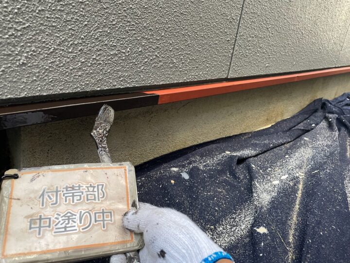 【下塗り】錆び止め塗料を塗布し、鉄部の錆び防止をします。