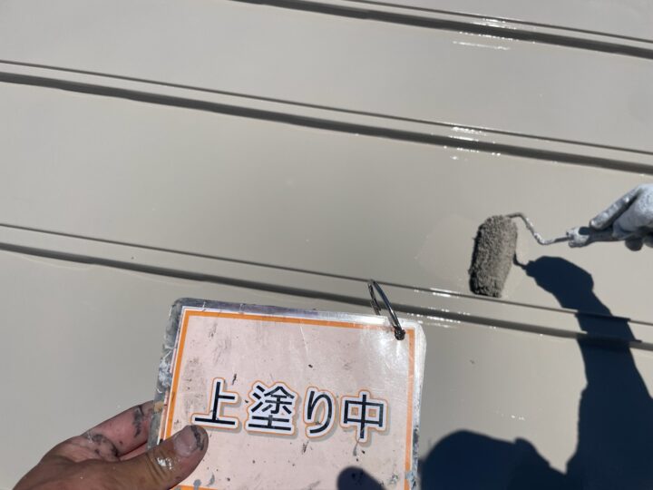 【上塗り】塗料を3回塗り重ねることで艶が増し、紫外線や雨水に強い耐久性のある屋根に仕上がります。