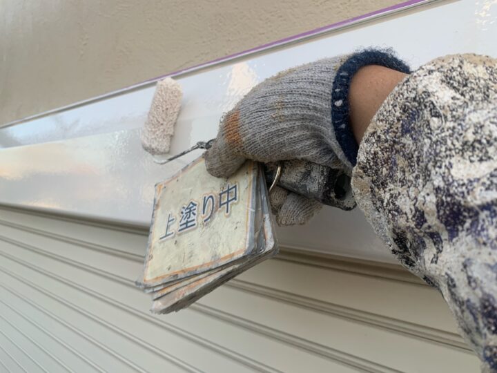 【上塗り】塗料を3回塗り重ねることで外壁の艶が増し、紫外線や雨水に強い耐久性のある外壁に仕上がります。