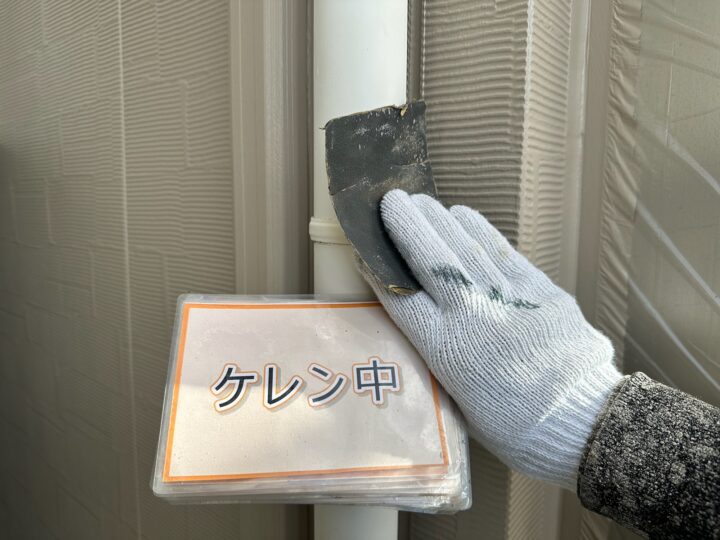 【ケレン】錆や汚れをきれいに落とし、平面を平滑に仕上げ塗料の密着率を上げる作業をします。