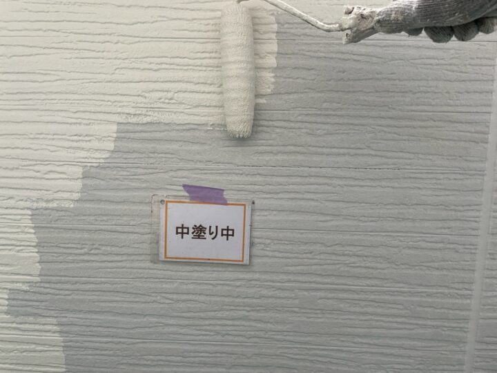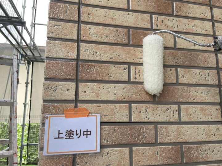【クリヤー塗装2回目】塗料を重ねることで外壁の艶が増し、紫外線や雨水に強い耐久性のある外壁に仕上がります。
