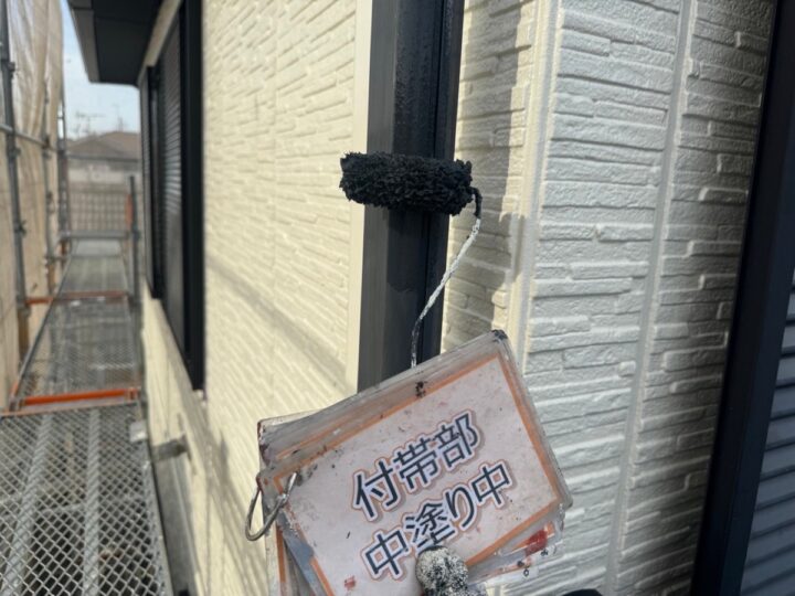 【上塗り】塗料を3回塗り重ねることで外壁の艶が増し、紫外線や雨水に強い耐久性のある外壁に仕上がります。