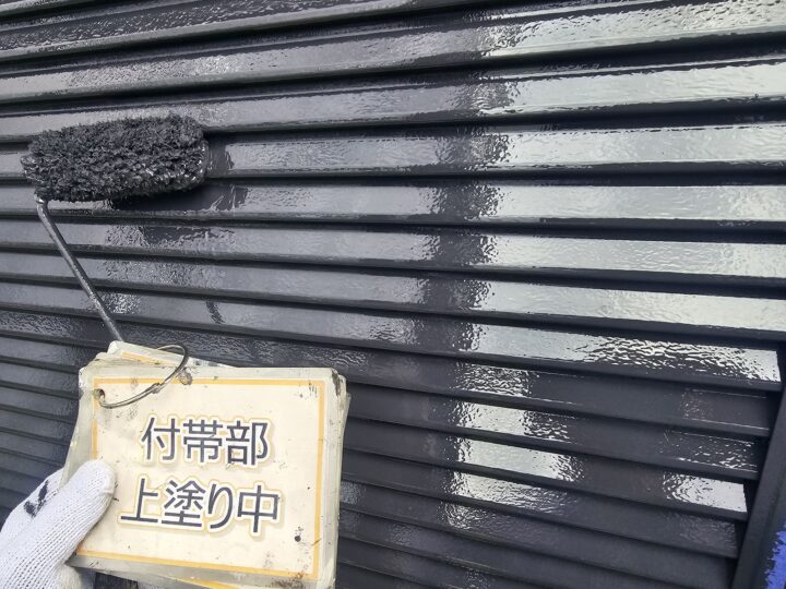 【上塗り】塗料を3回塗り重ねることで艶が増し、紫外線や雨水に強い耐久性のある屋根に仕上がります。