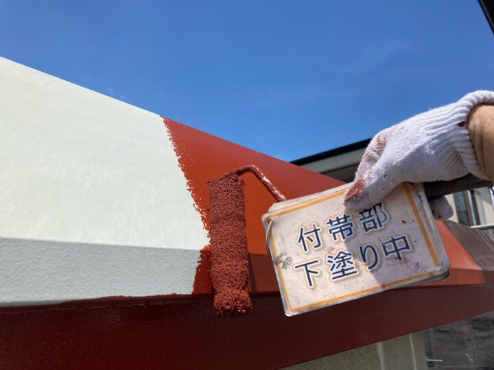 【下塗り】錆び止め塗料を塗布し、鉄部の錆び防止をします。