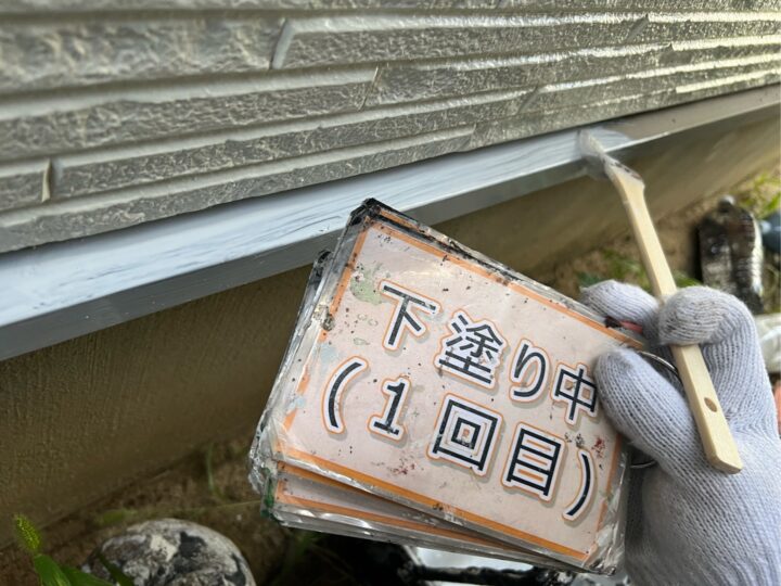 【下塗り】錆び止め塗料を塗布し、鉄部の錆び防止をします。
