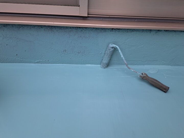 【ウレタン塗膜流し込み1回目】ウレタン防水材を塗布します。