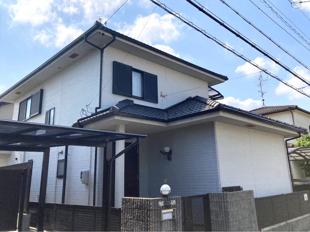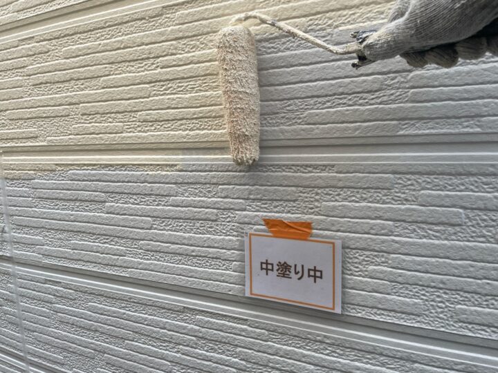 【上塗り】塗料を3回塗り重ねることで外壁の艶が増し、紫外線や雨水に強い耐久性のある外壁に仕上がります。