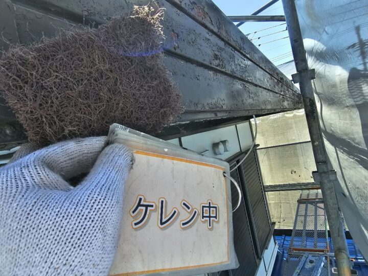【ケレン】錆や汚れをきれいに落とし、平面を平滑に仕上げ塗料の密着率を上げる作業をします。