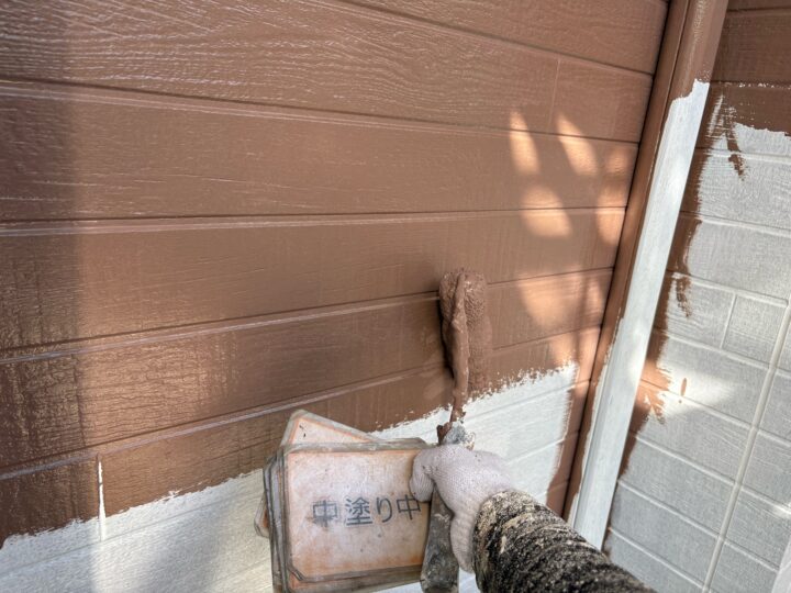 【上塗り】塗料を塗り重ね、色ムラを無くし美しく仕上げます。