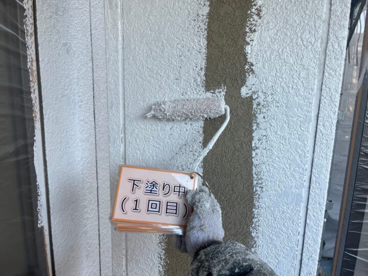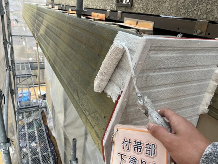 【下塗り】錆び止め塗料を塗布し、錆びを防止します。