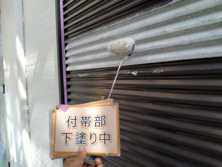 【下塗り】錆び止め塗料を塗布し、鉄部の錆び防止をします。