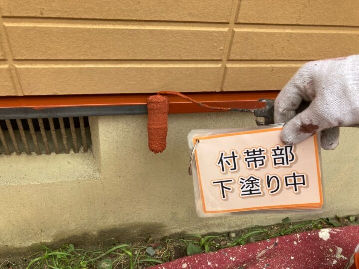 【下塗り】錆び止め塗料を塗布し、鉄部の錆び防止をします。