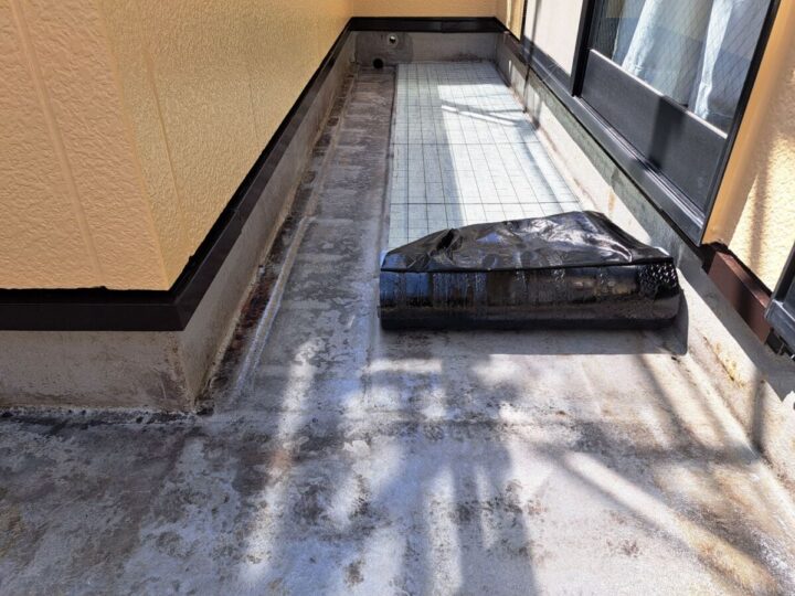 【ウレタン塗膜流し込み1回目】ウレタン防水材を塗布します。