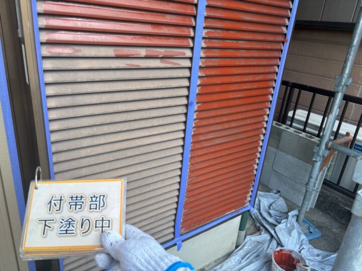 【下塗り】錆び止め塗料を塗布し、鉄部の錆び防止をします。