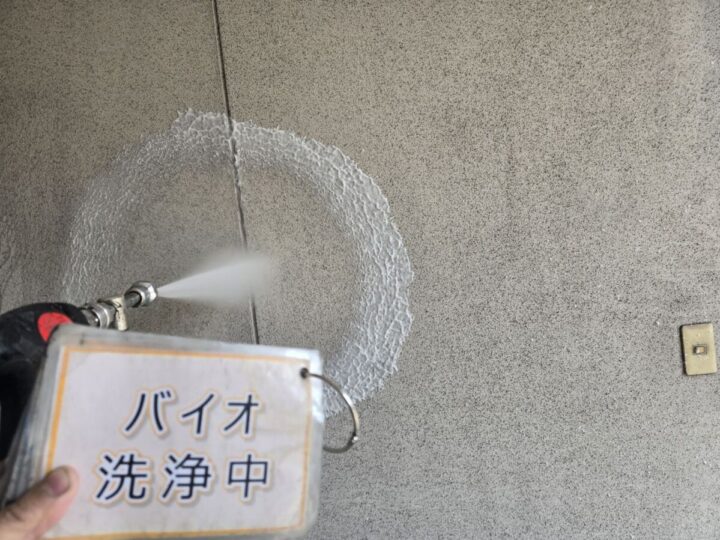 【洗浄】長年蓄積された頑固な汚れを隅々まで綺麗に洗浄していきます。シーリング工事①
