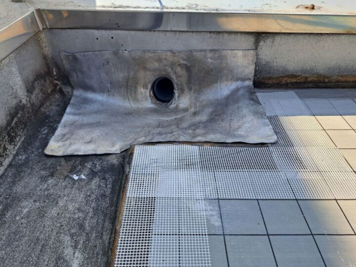 【改修用ドレン設置】雨水を排出するドレンを設置します。屋上防水工事④