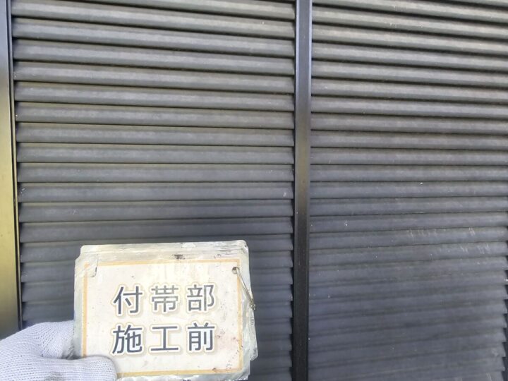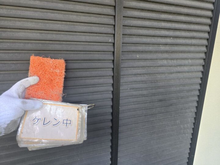 【ケレン】錆や汚れをきれいに落とし、平面を平滑に仕上げ塗料の密着率を上げる作業をします。雨戸塗装②