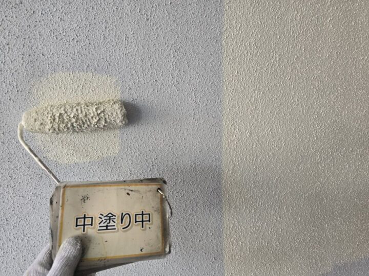 【中塗り】ご希望のカラーを塗装していきます。外壁塗装③