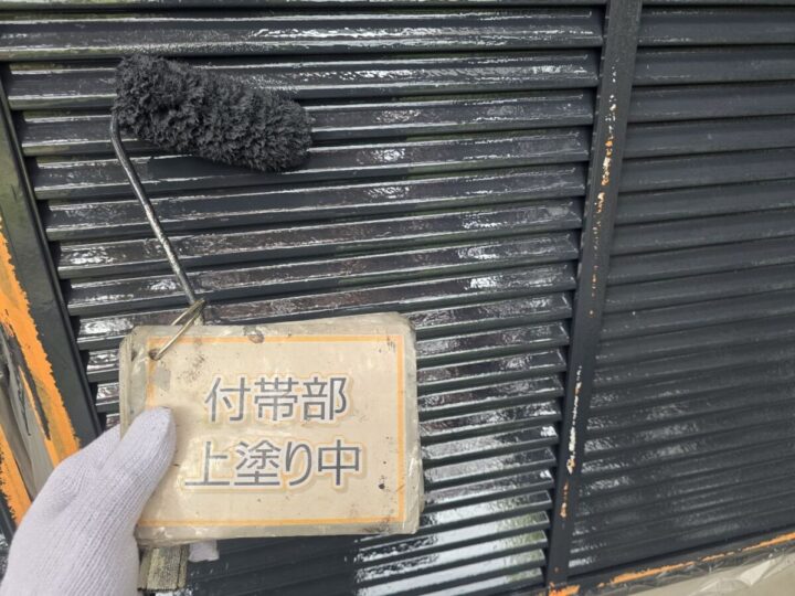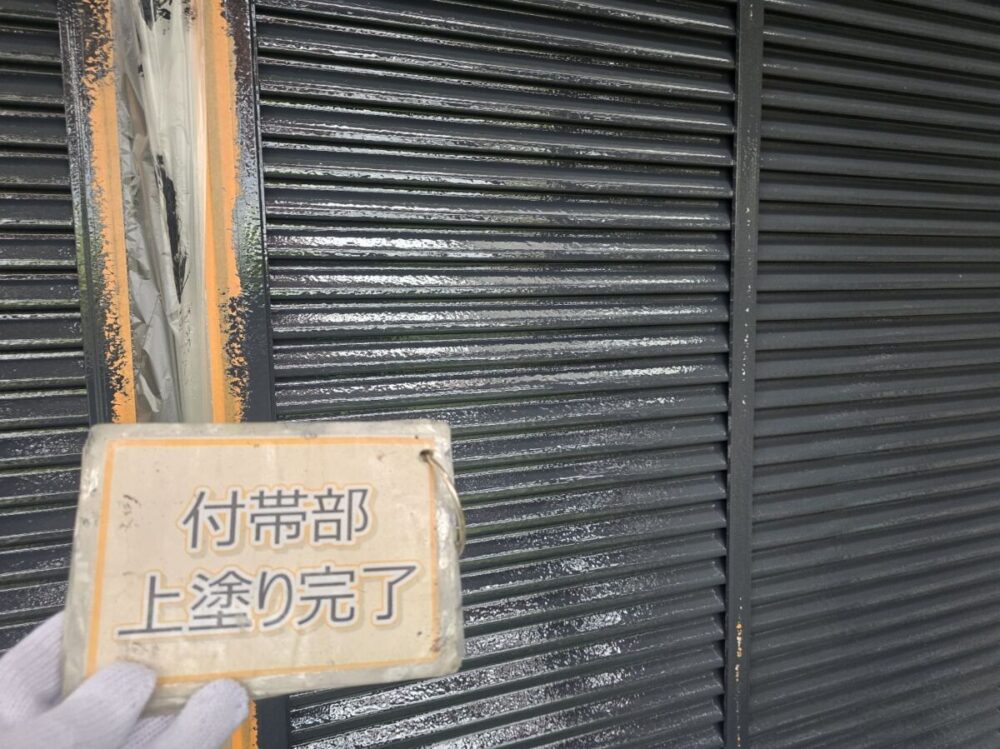 【上塗り】塗料を3回塗り重ねることで外壁の艶が増し、紫外線や雨水に強い耐久性のある外壁に仕上がります。雨戸塗装①