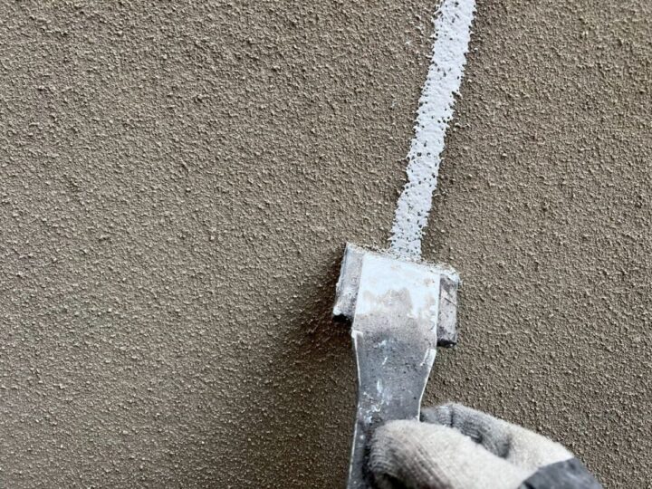 【押さえ】ヘラで形を整え施工完了です。外壁クラック補修①