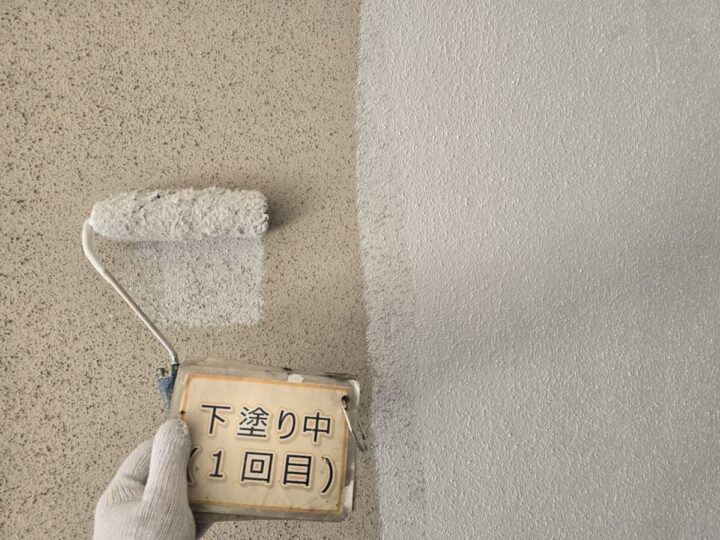 【下塗り】上塗り塗料の密着性を高める効果があります。外壁塗装②