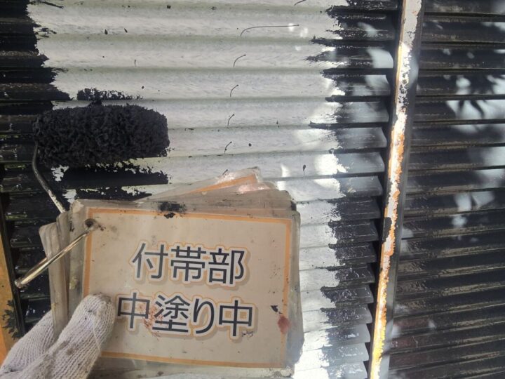 【下塗り】錆び止め塗料を塗布し、鉄部の錆び防止をします。雨戸塗装③