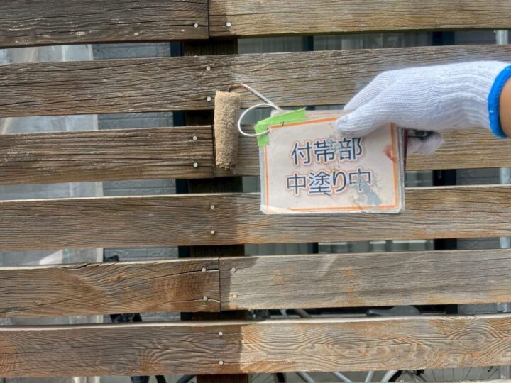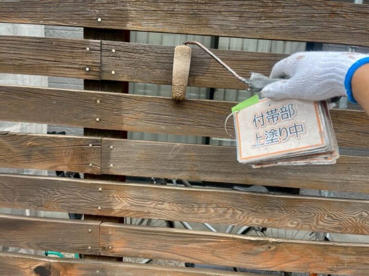 【中塗り】木部専用の塗料を塗布し保護していきます。木部塗装②