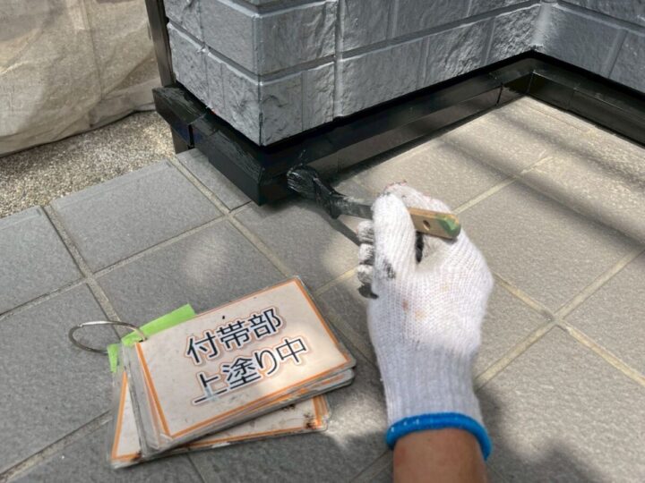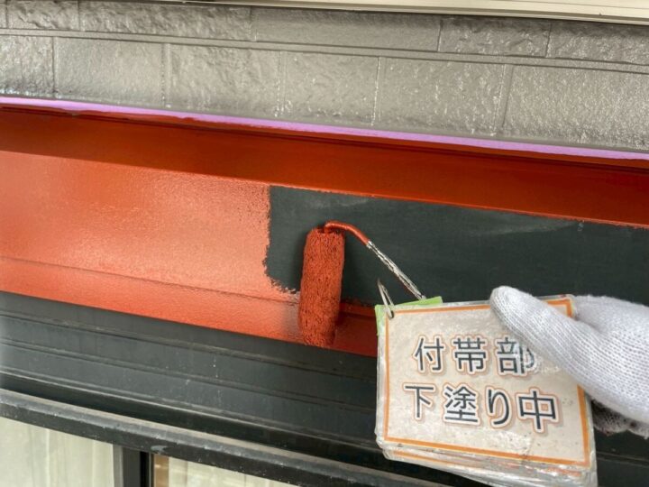【下塗り】錆び止め塗料を塗布し、鉄部の錆び防止をします。水切り塗装③